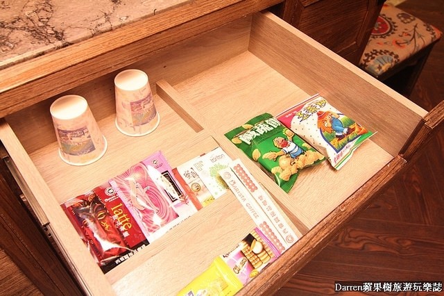 免費提供餅乾、咖啡、飲料、礦泉水等,不過每次來台中我都會跑去夜市買宵夜,所以先吃好料先XD