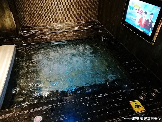 氣泡式按摩浴缸、淋浴花灑設備、浴室專屬小電視,浴缸水量很大很快就滿水位,還有水柱可以來按摩