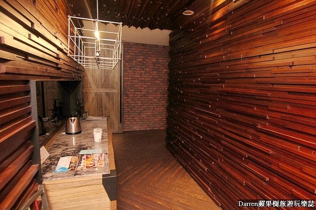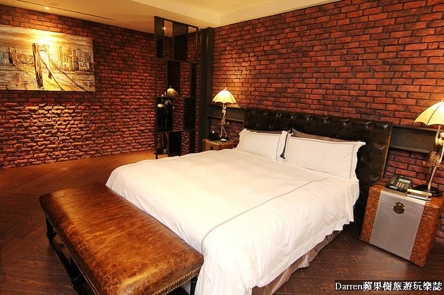 推開原木門片進到房間裡頭非常寬敞,瞬間疲勞彷彿拋到九宵雲外身心放鬆,粗曠的紅磚牆還有外露的鋼構