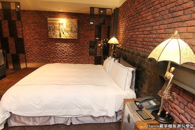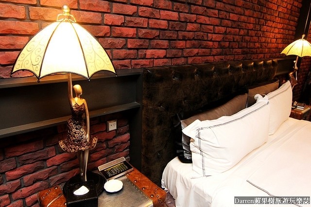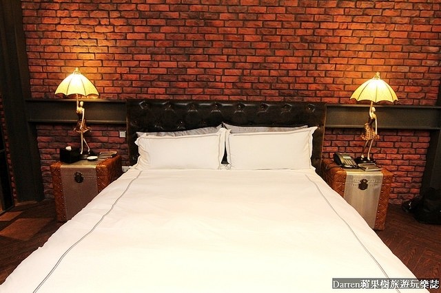 搭配上古銅工業風燈飾,整體風格粗獷中又帶些許典雅別緻,超大床舖讓我超想上去滾床睡起來也很柔軟唷