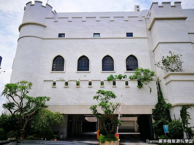白色城堡外觀真的非常搶眼,從路口就能看到旅館佔地寬敞,城堡白天拍起來有童話風晚上加上燈光氣氛也不錯