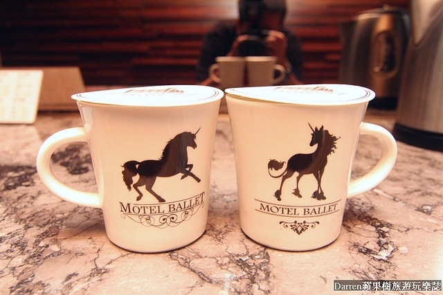 芭蕾城市渡假旅店VillaBallet的對杯很好看,獨角獸是旅館的logo,一公一母一對又是雙雙對對了