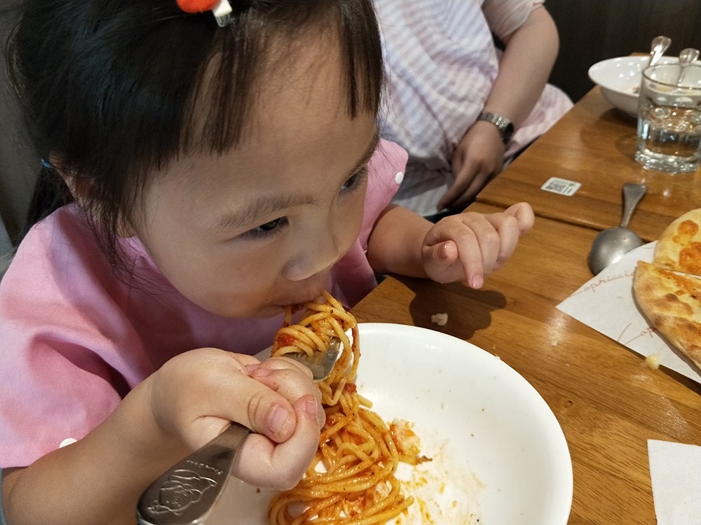 當然我們四大兩小不只吃了這樣,還加點了幾個推薦給大家的料理!我們另外也幫第一次來的岳父和岳母點了餐點,他們也吃得很開心!他們是吃義大利麵搭配披薩的雙人套餐。