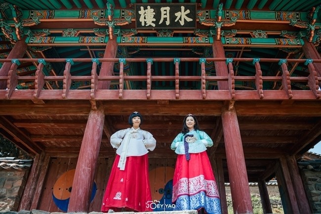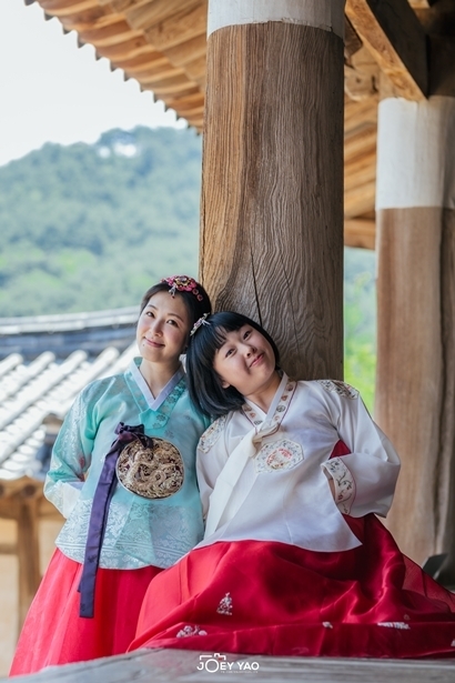 隔天我們就帶著跟共感民宿租借的韓服到道東書院外拍