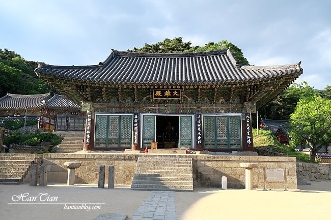 桐華寺的大雄殿建於朝鮮時代,供奉阿彌陀佛、釋迦摩尼佛和藥師如來佛