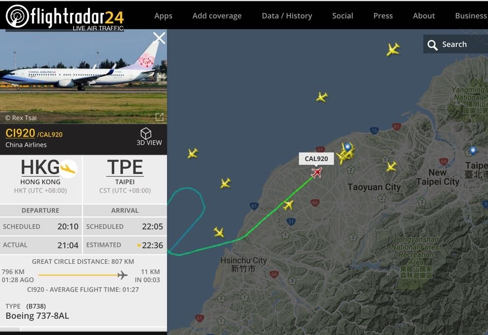flightradar24 網站:https://www.flightradar24.com/25.26,121.23/8