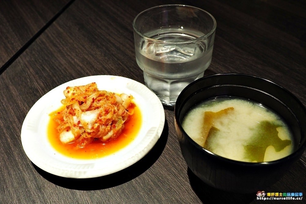 取了檸檬水和味噌湯回來後,搭配的是加點一份$50的韓式手工泡菜,在等餐的過程中,是越吃越開胃阿~