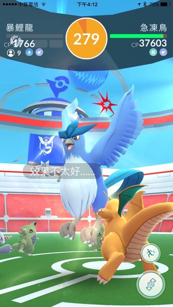 這間道館的神獸 – 急凍鳥此時威風凜凜的出現在眼前,看著僅有的 9 顆白球,再看著好不容易出現在眼前的急凍鳥,帶著緊張卻又有許多興奮的心情,慢慢的… 將白球拋出。