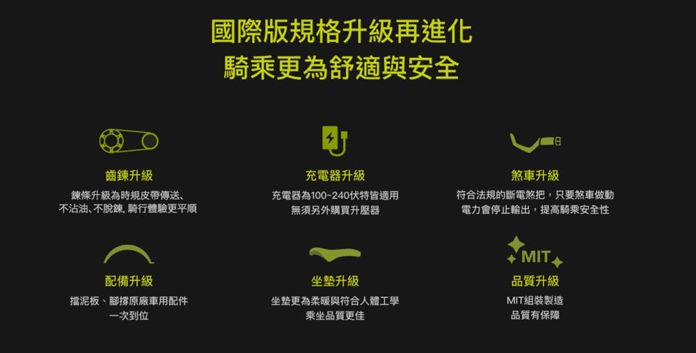 3) 斷電煞把設計,只要煞車,電力就會停止輸出,提高騎乘安全性;