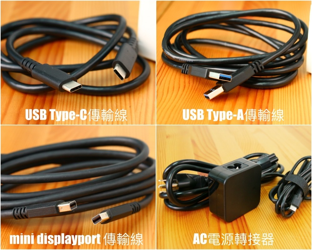 其中有 USB Type-C 傳輸線、USB Type-A 傳輸線、Mini DisplayPort 連接線和 AC 電源轉接器。如果要連接這款數位板並發揮威力,我們的電腦主機或筆電也同時需要具備這樣的連接埠,符合這樣的視訊傳輸線接頭。支援度方面大家不用擔心,接起來其實真的也沒有這麼複雜,等等會教大家怎麼使用囉!