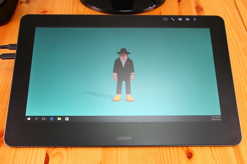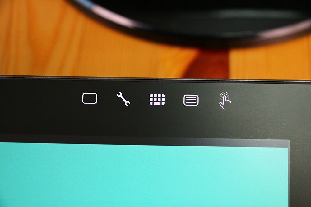 這裡一定要提到螢幕上方的快速鍵,設計得好漂亮!這 5 個背光觸控鍵可以讓我們快速執行一些指令,像是叫出鍵盤、Wacom 設定、開啟或關閉觸控,不用再點來點去了,關閉電源的時候可以隱藏起來,我覺得好處是同時也減少了部分設定的步驟,幾乎搭配數位筆就可以完成大部分的工作。