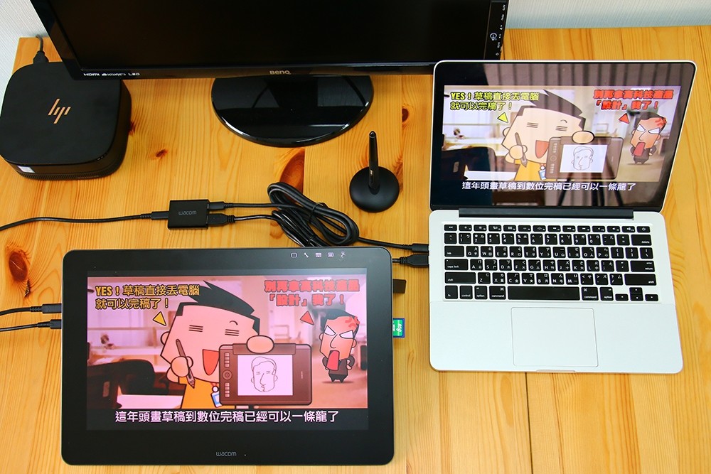 小恰手邊的新款 HP SLICE PC 剛好就有支援 USB Type-C 顯示訊號,目前新款的 Macbook Pro 也有支援,其實這也是未來的主流了,不過我覺得如果你的電腦主機還沒更新前,當然還是可以先藉由轉接器來搶先使用優秀的 Wacom Cintiq Pro 16,等到未來主機更新,繪圖板就可以無縫接軌啦!