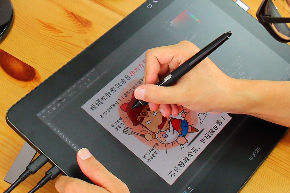 有了準確的感壓細膩度,那麼在數位板上創作就幾乎跟在紙上創作一樣了!另外我自己在用板子的時候,初步感受是畫布空間滿大的,可能窄邊框的設計也有影響到。另外我個人建議是將腳架立起來,基本上手靠著也不會誤觸,而且下方有足夠的空間可以放置手腕,一方面也符合人體工學囉!