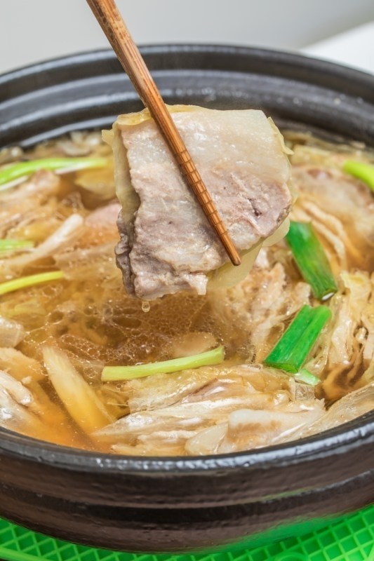 這樣煮出來的湯頭,具有高麗菜的甜度,就連五花肉的油脂也融合至湯裡,所以湯頭喝起來又甜又鮮美。