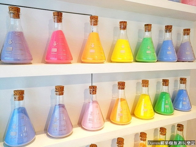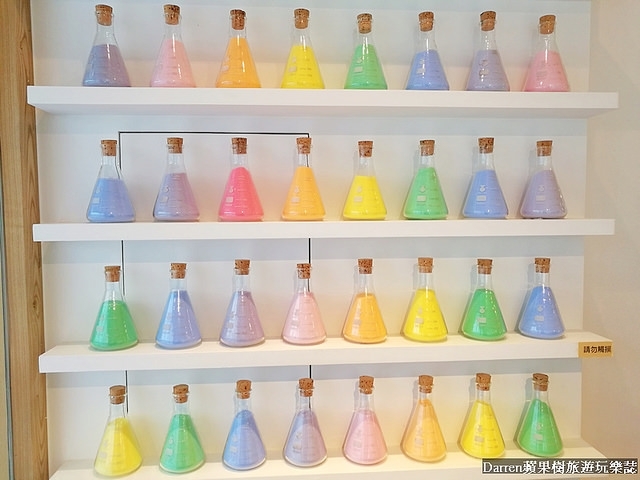 這裡最特別有別於其他店家的拍照打卡牆,就是這面彩虹三角錐瓶牆,牆面雖然不大超級好拍很有特色
