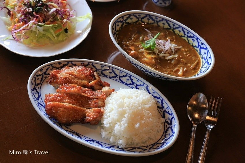咖哩炸雞套餐(¥1,570),可以一次吃到豬牛羊三種不同口味的咖哩,擺盤漂亮,炸雞皮脆肉軟嫩,白飯是原本就好吃的日本米,而且還附甜湯、沙拉,難怪一直是Cafe 薑黃花的人氣招牌,推薦必點。另外要提醒大家的是,這三款咖哩都是會辣的,能不能吃辣再請自己判斷囉~