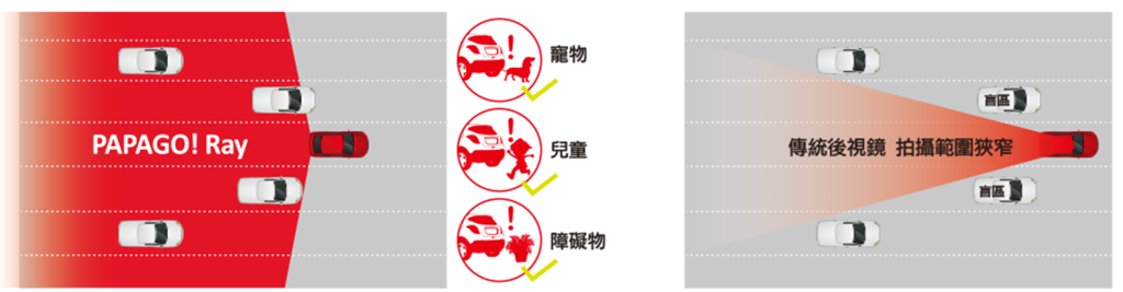 對於行車紀錄器來說,因為需要即時影像回饋,所以不需要影像同步,但對於後視鏡來說,最大功能並非紀錄畫面,而是讓駕駛人更快速即時的反應車後狀況,不允許延遲。而 PAPAGO! Ray 也克服了影像傳輸延遲問題,可同步肉眼看到的即時影像。