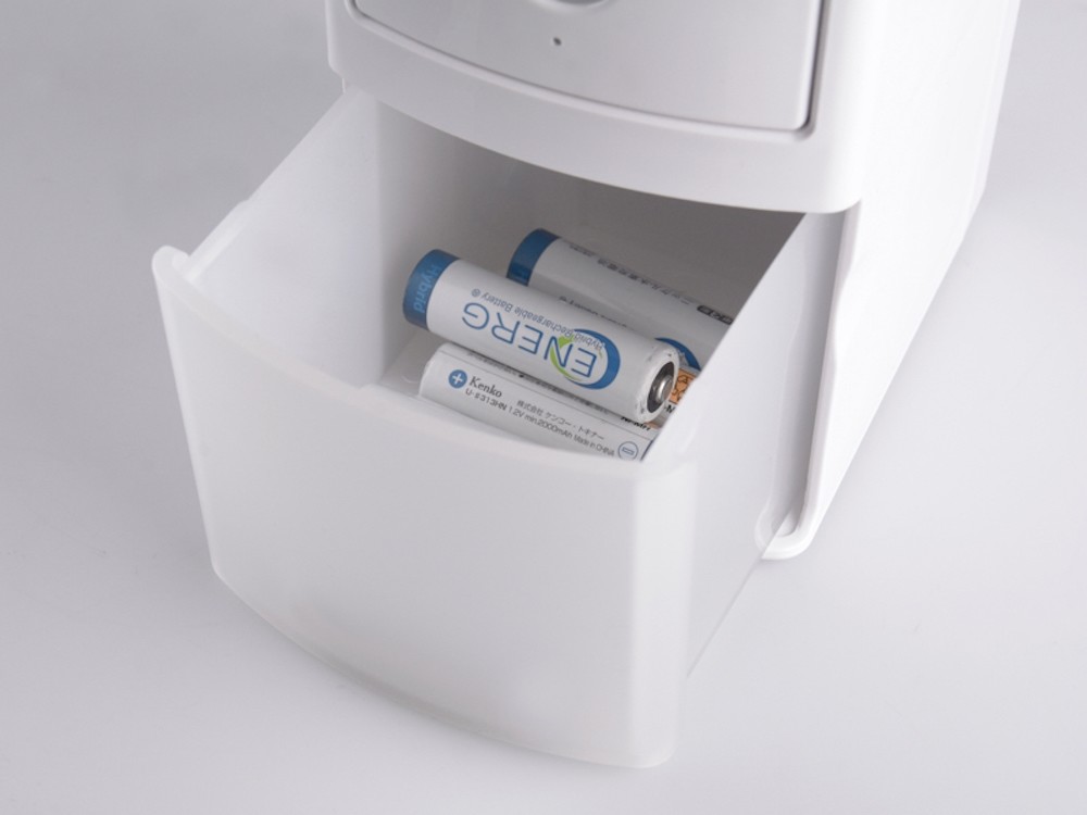 ENEROID EN20B 是個三層結構設計的電池充電器,最上層的結構是尚未充電的電池室,可不分正負極的將 3 號電池放入,最多可放入 20 顆,中間的轉盤結構是電池充電區,每次最多會有四顆電池停留在此區充電,而充飽電的電池將會依序落入最下層的集中抽屜,拉出抽屜即可馬上使用已充飽電的電池。