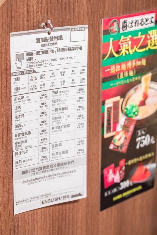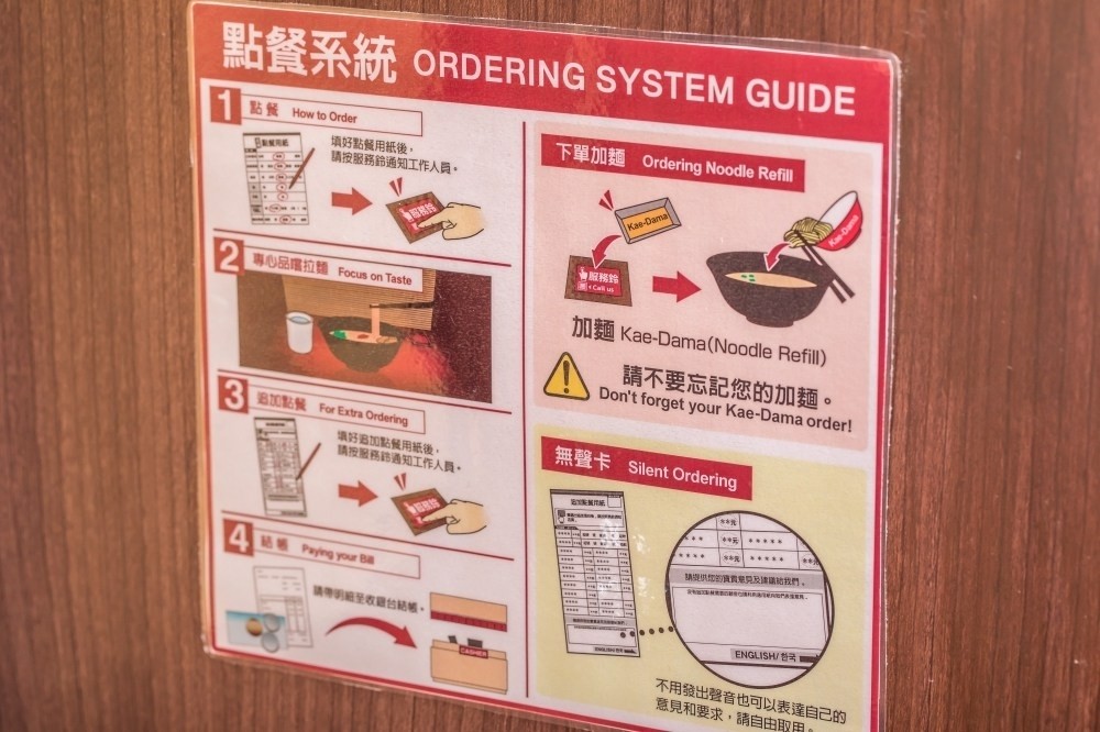 看完ICHIRAN一蘭拉麵台灣台北本店的完整環境之後,接下來就是準備用餐
