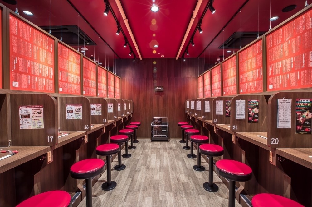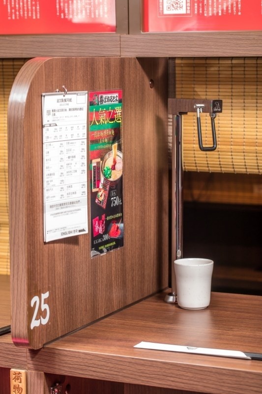 像是為什麼拉麵湯頭加入碗裡之後,要在30秒裡放進麵條?而完成後為什麼要在15秒內送到客人手上?為什麼要把座位打造成一格一格的方式?或是想要加麵的時候都會有獨特的聲響,其實這些方式都有其意義存在