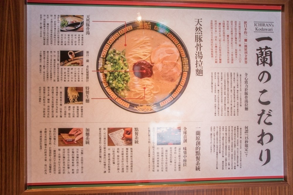 進門之後,第一眼就看到ICHIRAN一蘭拉麵的全中文介紹,說實話,如果是純粹只想用餐的朋友,可能會覺得這樣的文宣有些囉唆,但熊倒是建議大家有空的話可以看一夏,其實裡面隱藏著很多用心