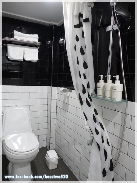 因為浴室沒有乾溼分離所以浴簾一定要拉好不然廁所衛生紙就會全部報銷拉~~