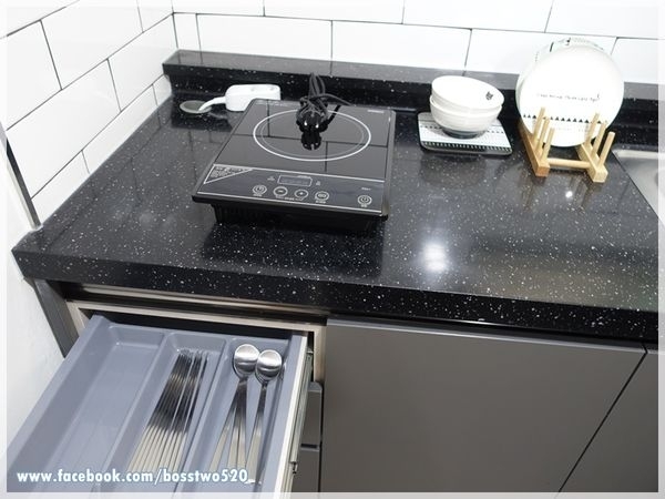 民宿房間裡都有附流理台還有電磁爐與刀叉