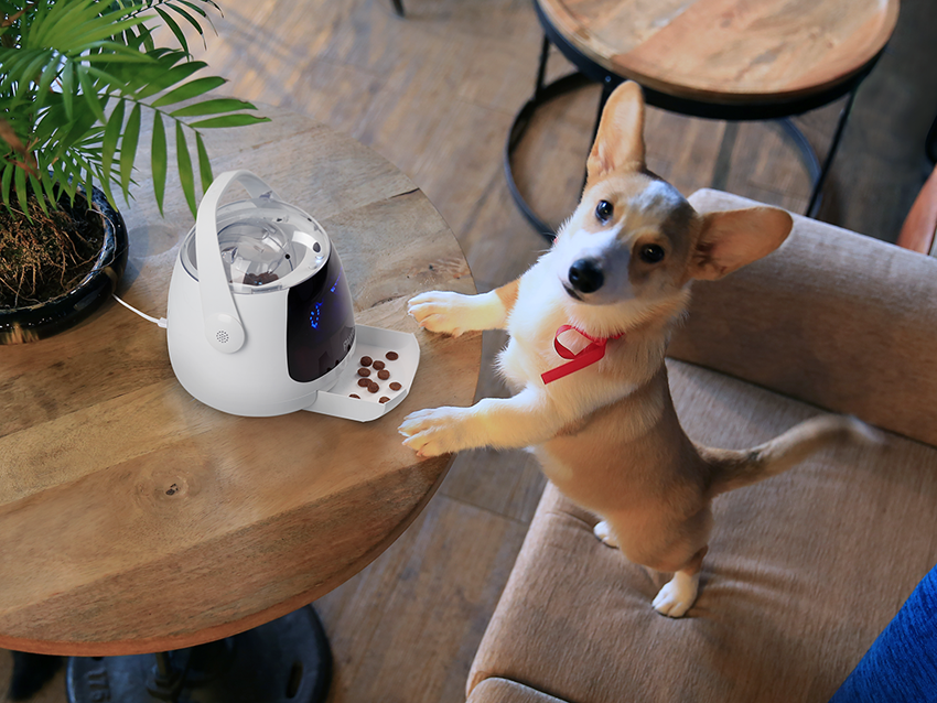 Pawbo Munch 還精心設計了「拉霸機」類型的情境遊戲,讓寵物能獲得不同份量的點心。根據如拉霸機般隨機得到的不同符號結果,Pawbo Munch 會轉出不同分量的美味點心,從滑道送出或落入托盤內,讓寵物與飼主都能感受到樂趣。