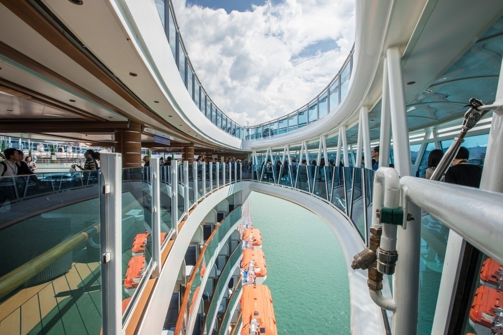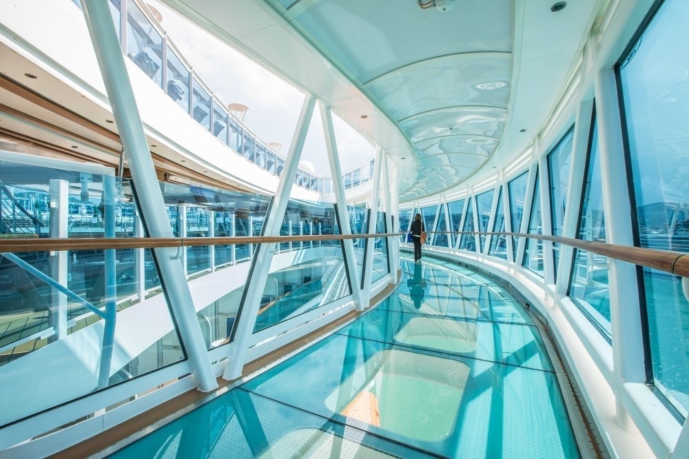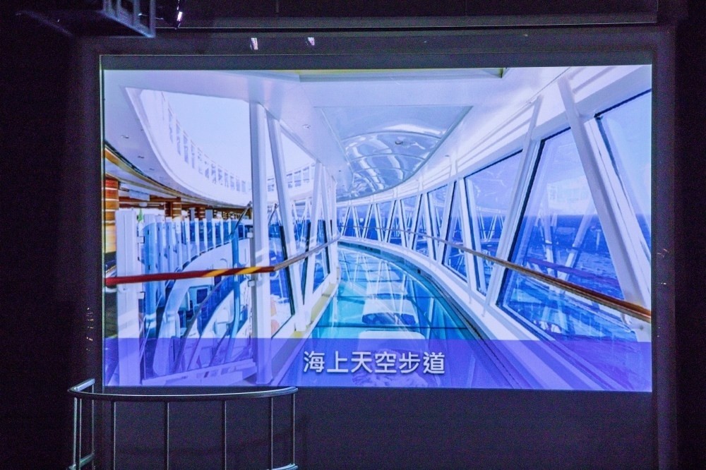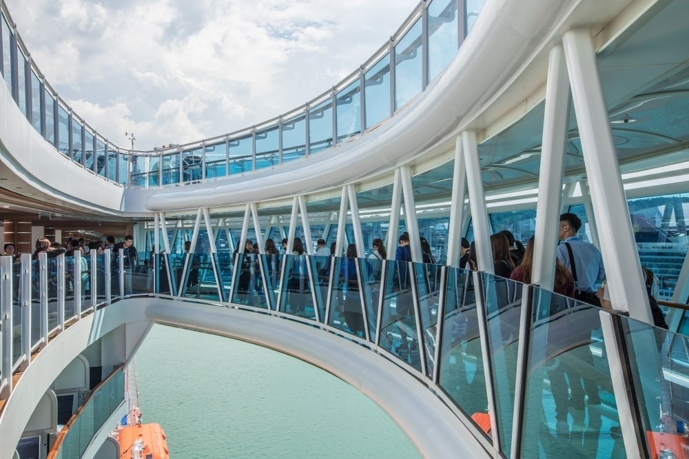而在公共空間上,盛世公主號也設置了獨創的海上天空步道,透明的玻璃幕牆能飽覽360度全景。