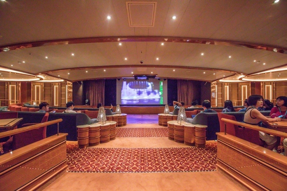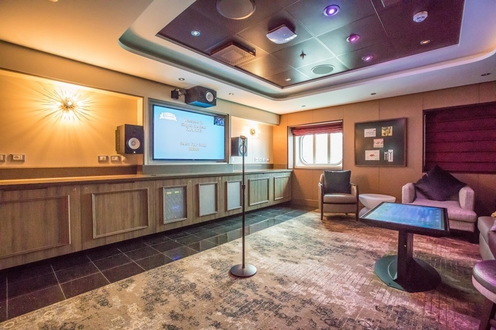 如果想高歌一曲,盛世公主號居然還有亞洲特有文化,就是有海景的KTV包廂,實在是太體貼哩!