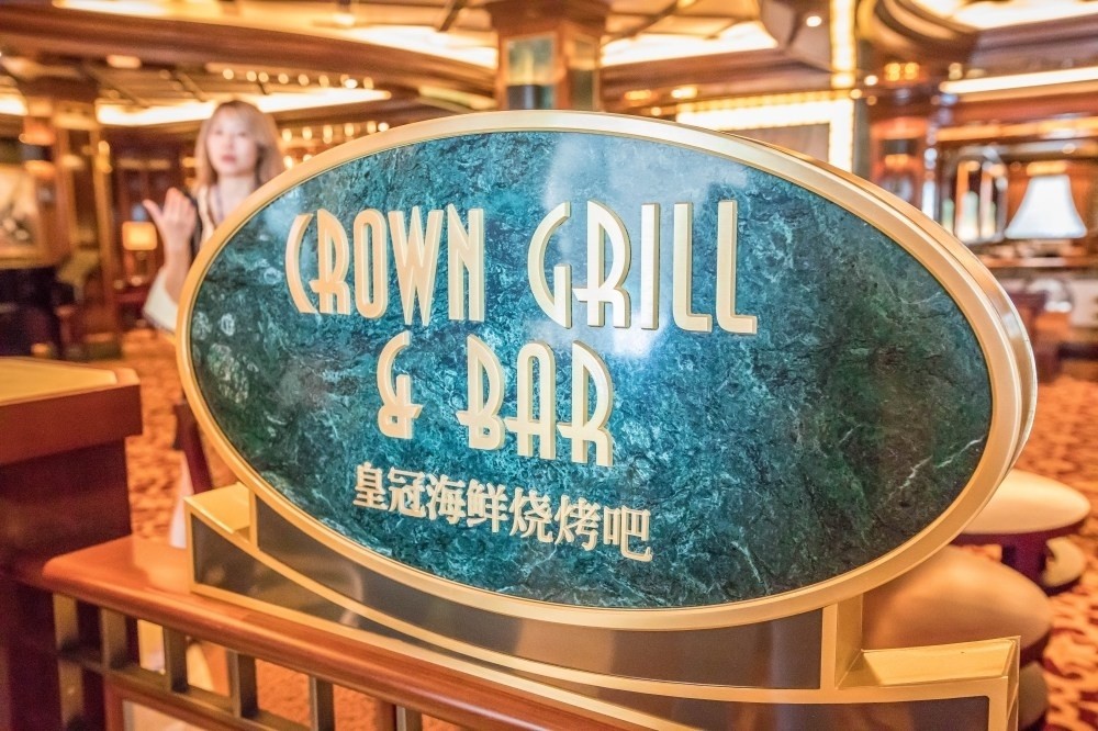等到用完餐,接下來就是盛世公主號的船體導覽時間,因為梯次不同的關係,熊跟媒體的流程是從室內到室外,所以第一站我們就來到這家皇冠海鮮牛排燒烤吧
