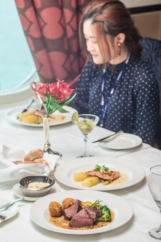 一邊用餐一邊看著窗外的海景,這就是在遊輪上用餐最愜意的地方了