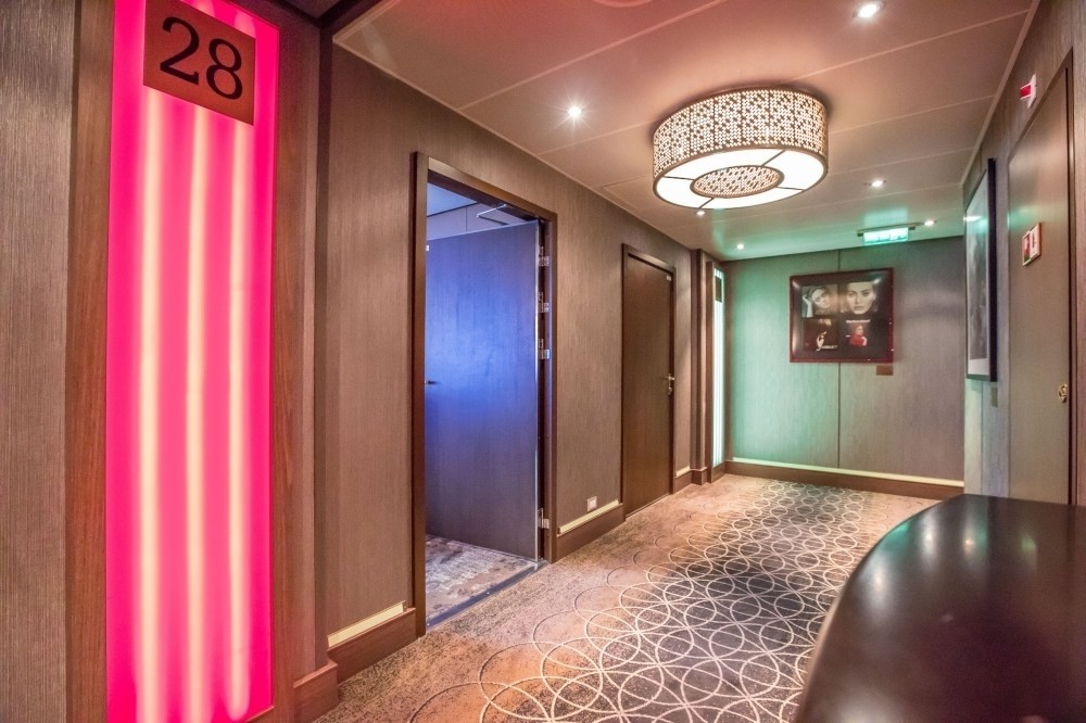 再來,因為設計裝潢融合了流行跟藝術及歷史元素,所以盛世公主以金屬、玻璃和鑲嵌木打造精緻奢華風範搭配花卉圖樣地毯彰顯東方氣質。