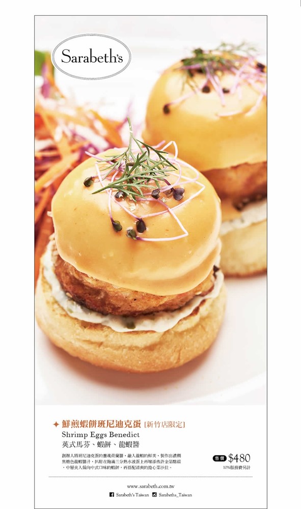 值得一提的是Sarabeth’s新竹巨城SOGO店有兩種限定餐點,分別為鮮煎蝦餅班尼迪克蛋和家傳香蕉磅蛋糕,也可以點來嚐鮮看看,因為其他間吃不到唷!