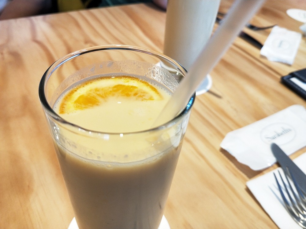 柳橙果露主要是柳橙、牛奶、煉乳、蜂蜜、香草的組合,簡單來說,口感就是有清爽果汁的豐富口味奶昔。