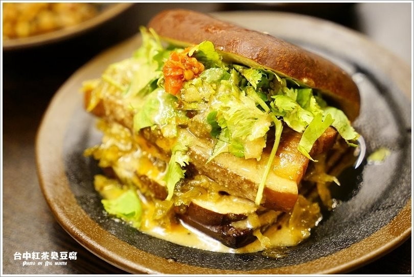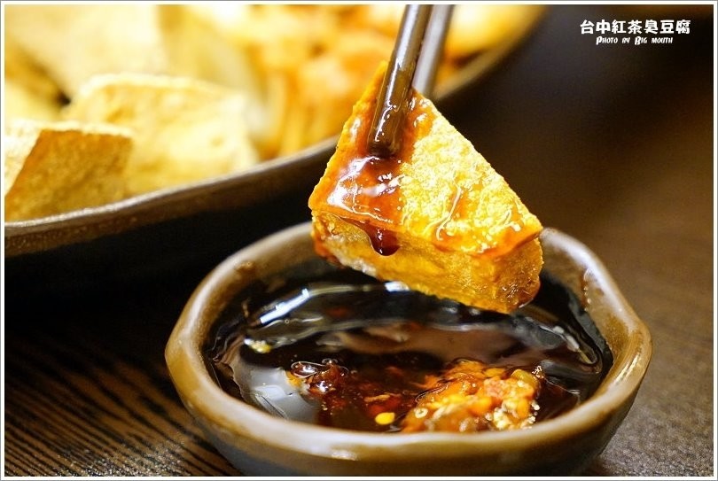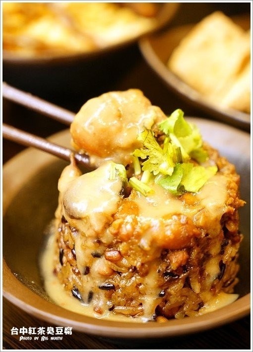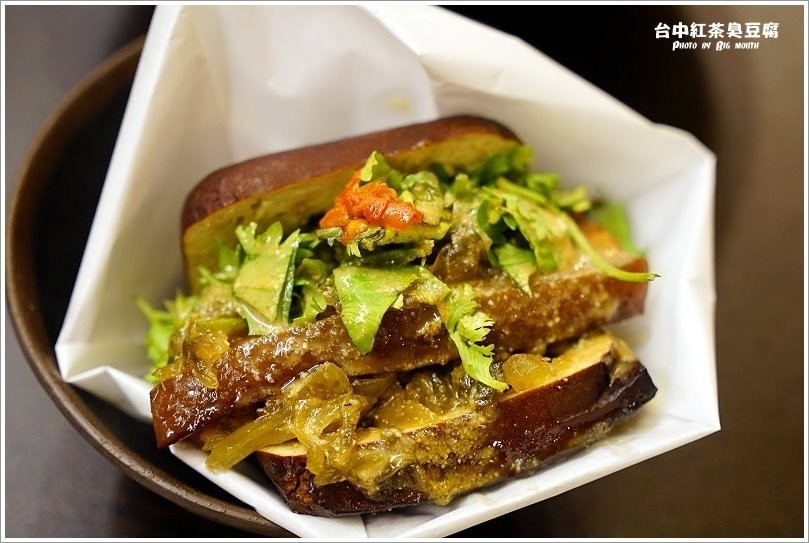 ▼當然也可以沾滿醬料後再加入配菜享用,不僅能吃到紅茶臭豆腐的酥香軟嫩,還有配菜的爽脆解膩~加上醬料更為提味好吃,一口吃下大大滿足!