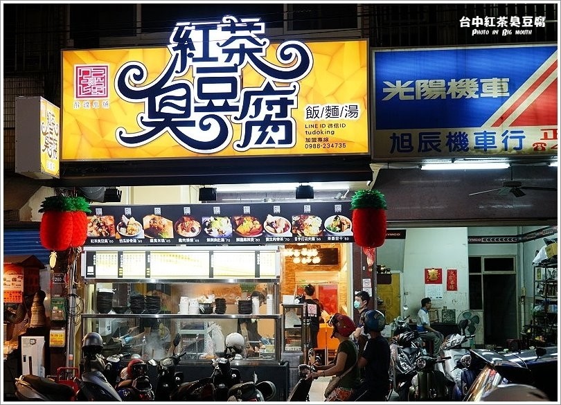▼「紅茶臭豆腐」西屯旗艦店就位於台中市西屯區西屯路二段、河南路二段交叉路口附近,明亮的扛棒在黑夜裡格外顯眼!
