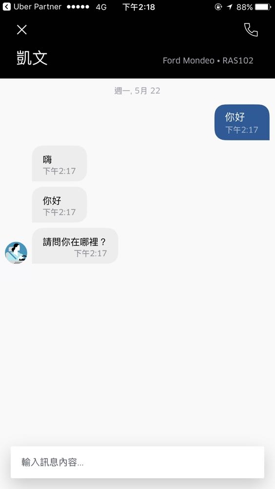 當用戶確認好預約叫車之後,如果需要與駕駛溝通只需要在 Uber app 的主頁面上找到駕駛,點選聯繫 (contact) 接著再按聊天 (chat) 。而這項內建簡訊 (In-app chat) 聯絡的功能已經在全球陸續推展,台灣用戶現在也可以使用。不過要注意的是若想要使用該功能前要記得將 app 更新到最新版本唷!