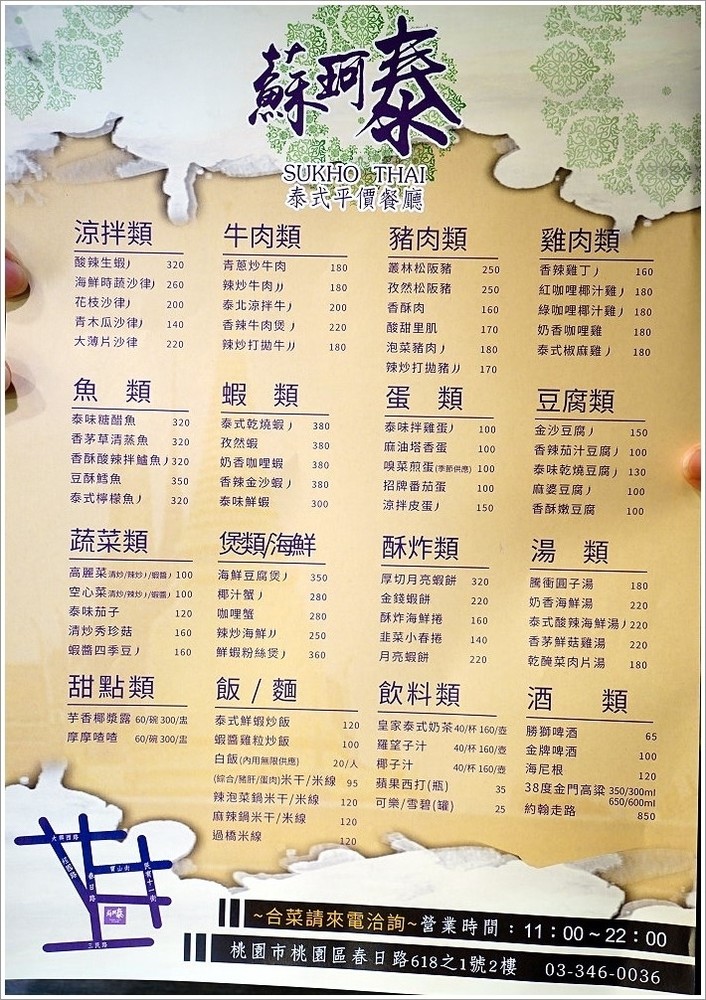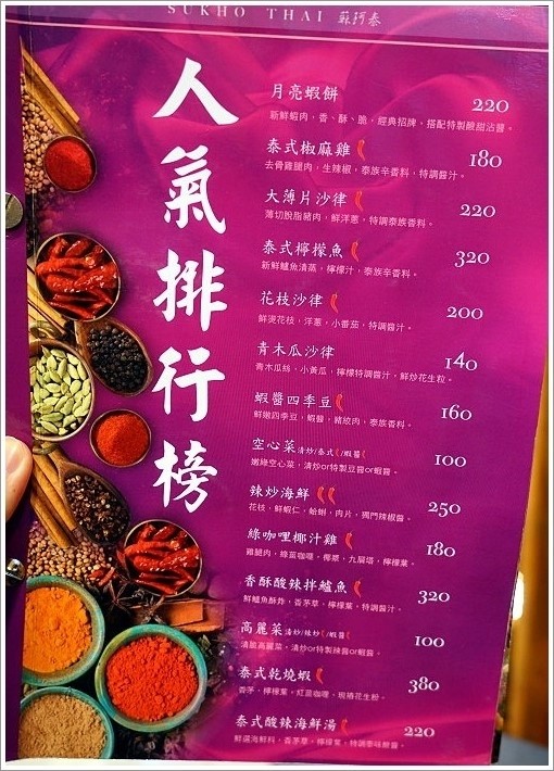 ▼「蘇珂泰泰式餐廳」餐點選擇不少,價位約從95~380元不等,算是比較平價的泰式餐廳!