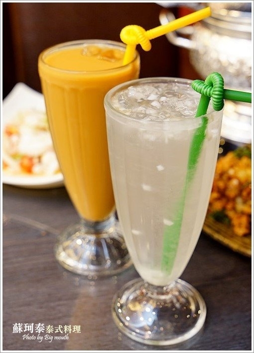 ▼椰子汁(40元),喝起來頗為清甜爽口,裡頭還喝得到不少椰子的果粒,搭配餐點還滿合拍的!皇家泰式奶茶(40元/杯),特別採用兩種泰國進口的茶葉依照黃金比例混搭而成,喝起來茶香味濃,帶點煉乳的溫潤香甜,甜度不會過高過膩,算是滿好喝的一杯!