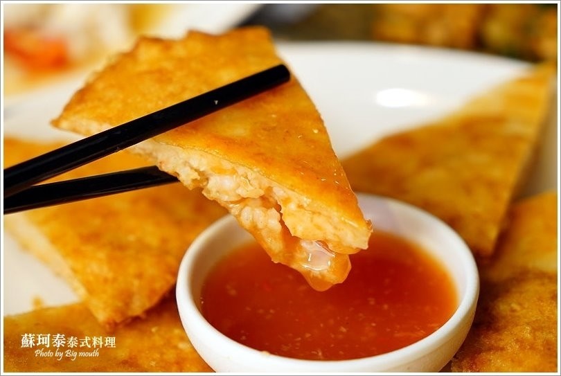 ▼一口咬下,不僅能吃到酥香薄脆的餅皮,搭配鮮香Q彈又甜美的草蝦,吃起來真的有種在嘴巴跳躍的快感,超彈又鮮甜,沾附特製酸甜沾醬就相當提味好吃,不僅解膩還能涮嘴!