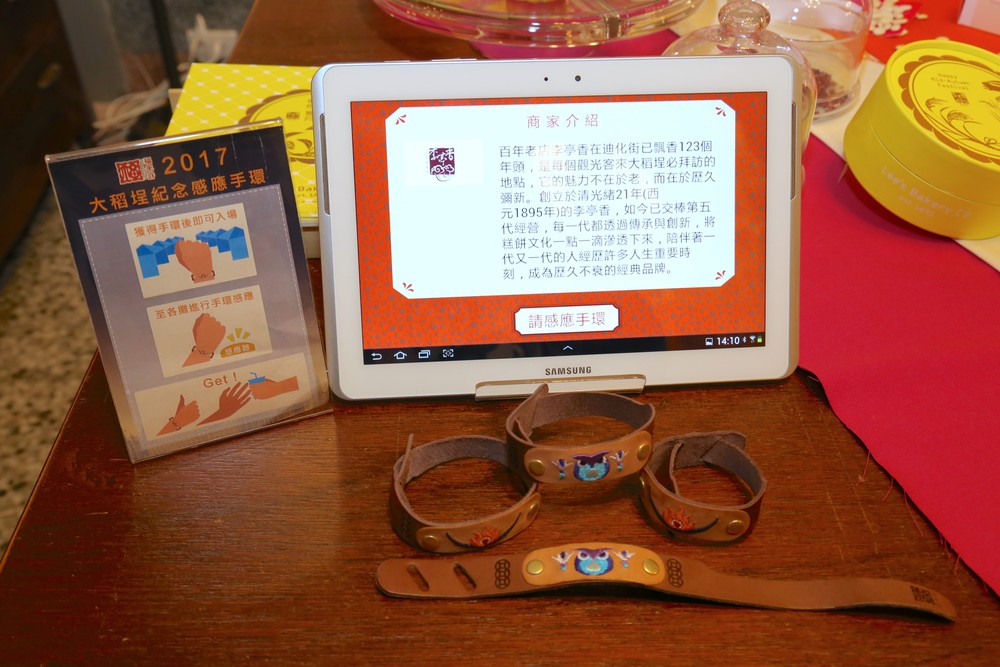 為歡慶新品上市,即日起至9/8訂購李亭香「八喜迎秋」禮盒滿十盒以上可享9折優惠,若使用大稻埕紀念智慧手環並下載「暢遊大稻埕」APP,即可免帶錢輕鬆暢遊大稻埕,現場購買「八喜迎秋」中秋禮盒還可享8折優惠(不得與其他優惠併用)。