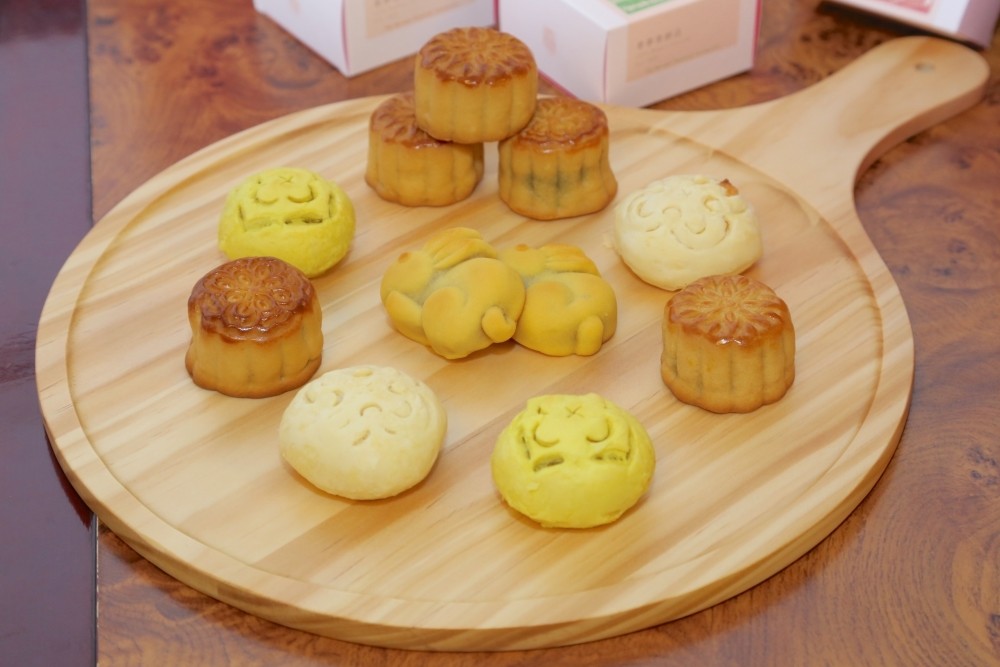 新品「八喜迎秋」中秋禮盒,含印度咖哩里肌2入+乳酪夏威夷豆2入+宇治抹茶紅豆2入+明潭紅茶豆沙2入,稻澄香寶米盒內有黃金柚香豆沙2入、二林寶米茶包4入,售價1480元。