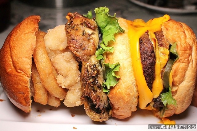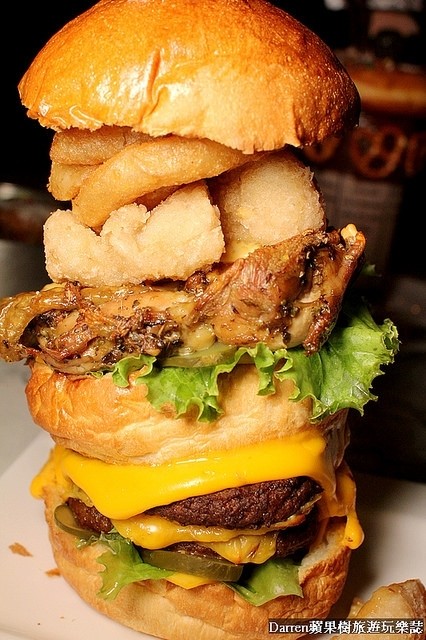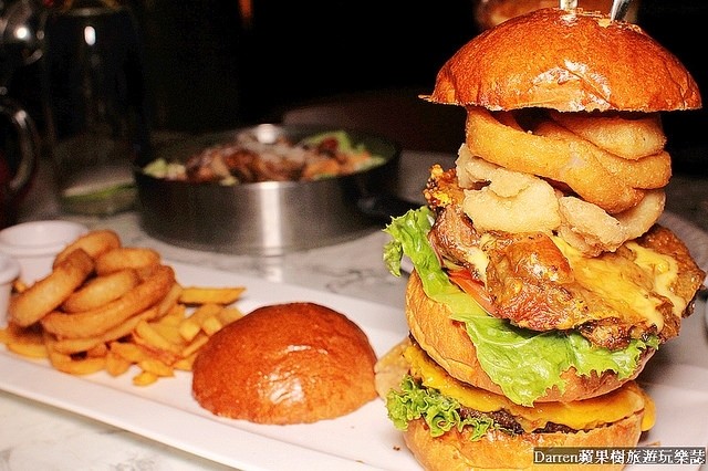 大食量的朋友一定要來挑戰一下~超級浮誇的海陸美式漢堡!!!超高漢堡層層疊疊光是厚度就有30公分