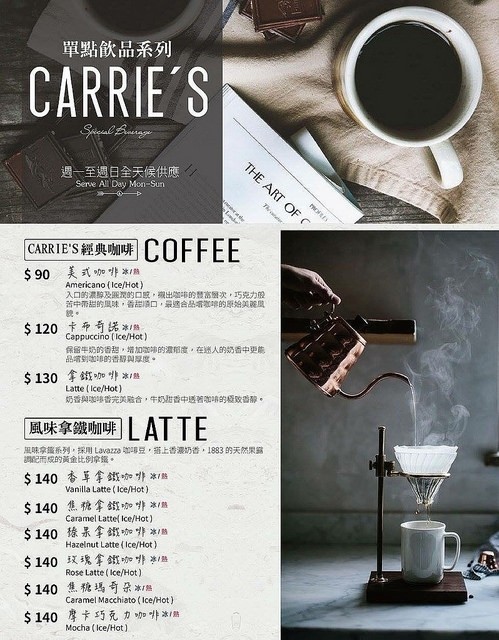 ▲CARRIE’S美式早午餐的MENU菜單(單點飲品系列)