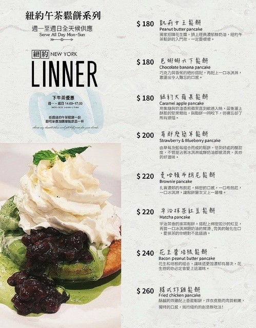 ▲CARRIE’S美式早午餐的MENU菜單(紐約午茶鬆餅)
