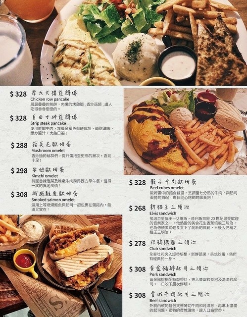▲CARRIE’S美式早午餐的MENU菜單(煎餅塔/歐姆蛋/三明治)