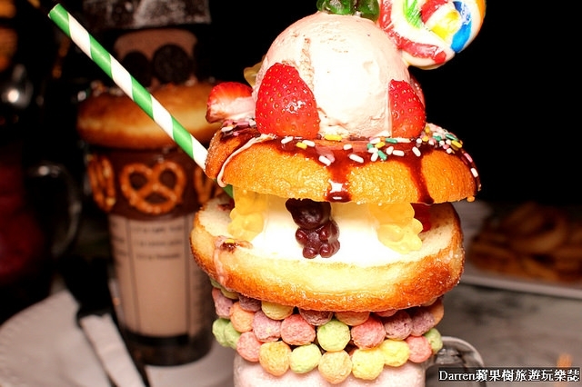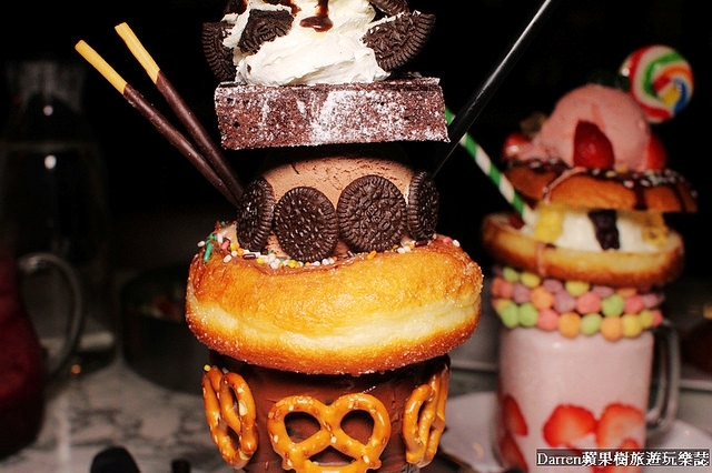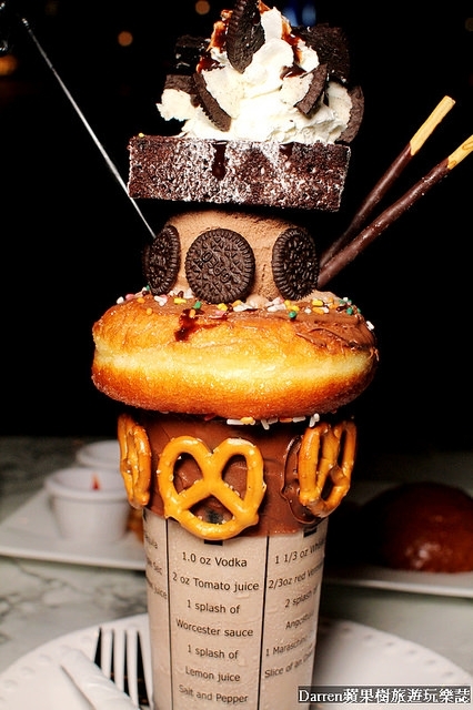 巧克力冰淇淋、奶油、OREO餅乾、巧克力布朗尼蛋糕等,上面看起來就像王子的皇冠,同樣是非常的浮誇