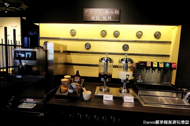 甜點有烏龍茶、可爾必思、可口可樂飲料機,還有冰淇淋機可以自己來用冰淇淋加入喜歡的配料