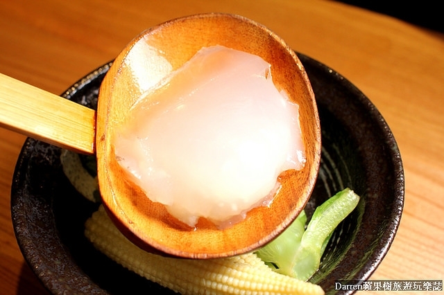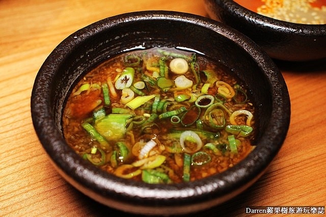 日本特製柑橘沾醬(特製柑橘醬+蘿蔔泥+蔥花),個人推薦沾海鮮類和菇類、蔬菜類不錯,帶點微微酸度